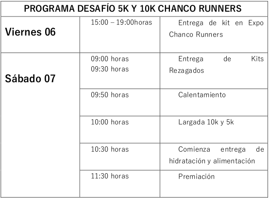ENTREGA DE KITS: Viernes 06 de Enero de 2023 desde las 11:00 hrs, hasta las 19:00 hrs en “EXPO CHANCO RUNNERS”.